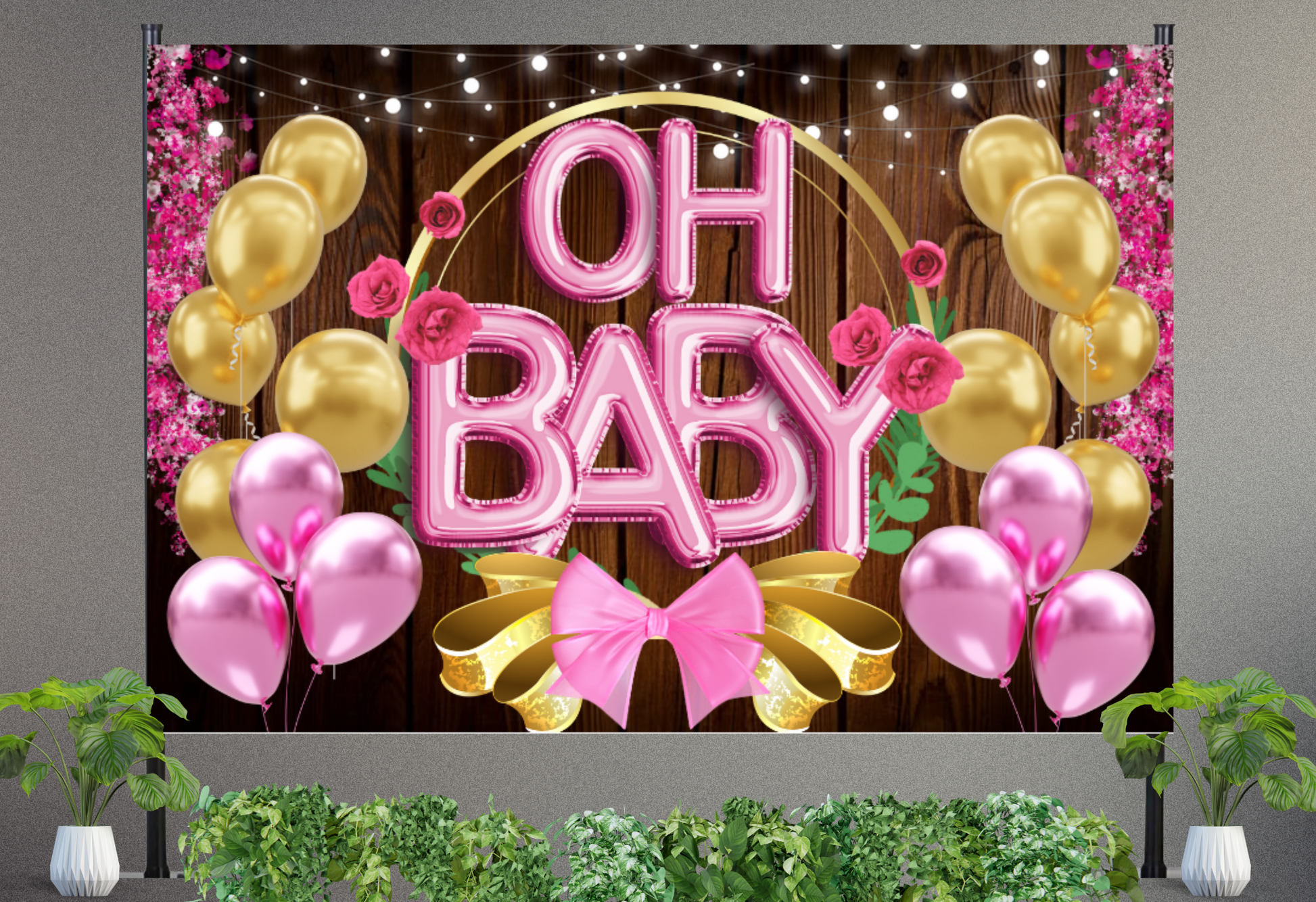 Baby Shower Vinyl Banner Backdrop Pink Oh Baby - RUSH or STANDARD Turnaround