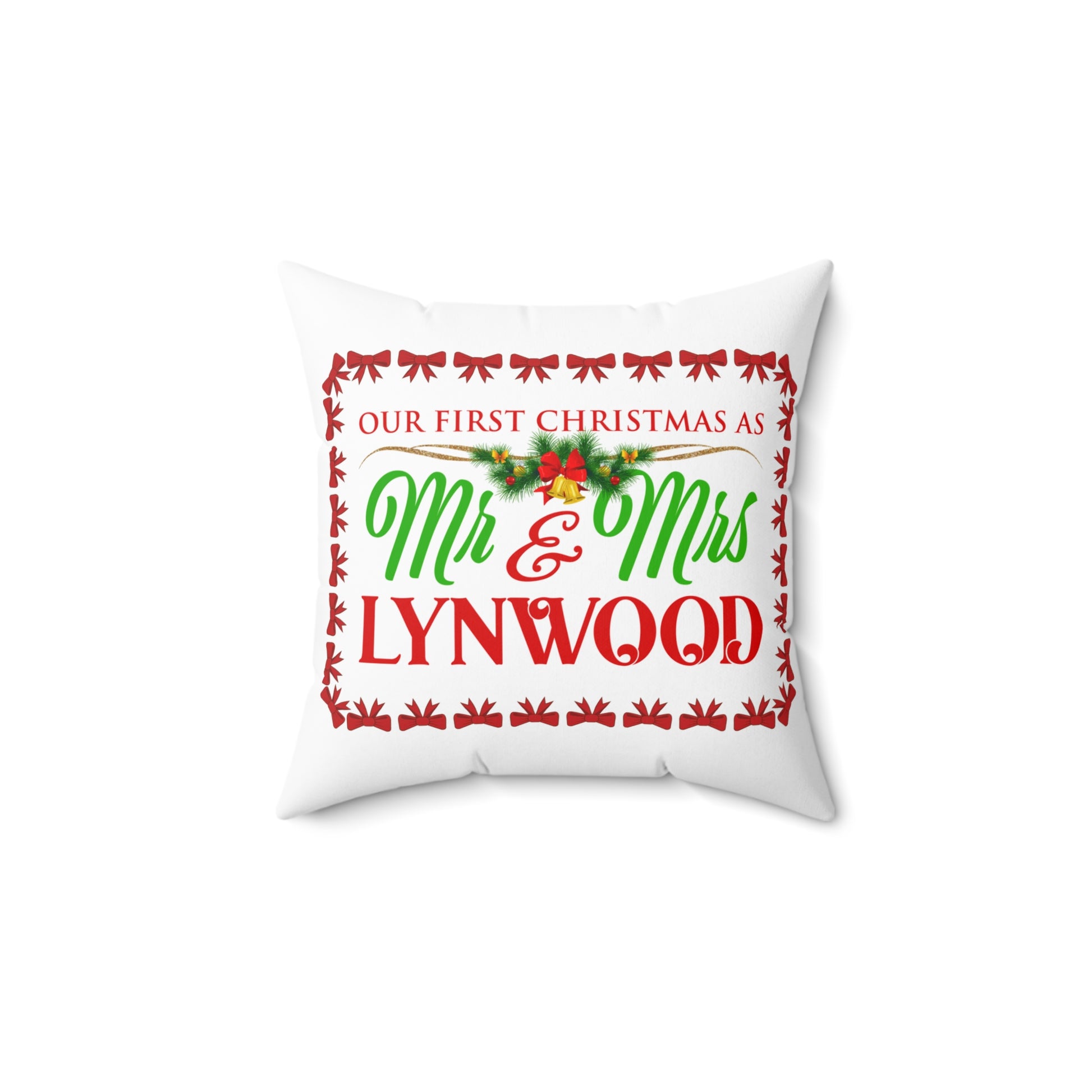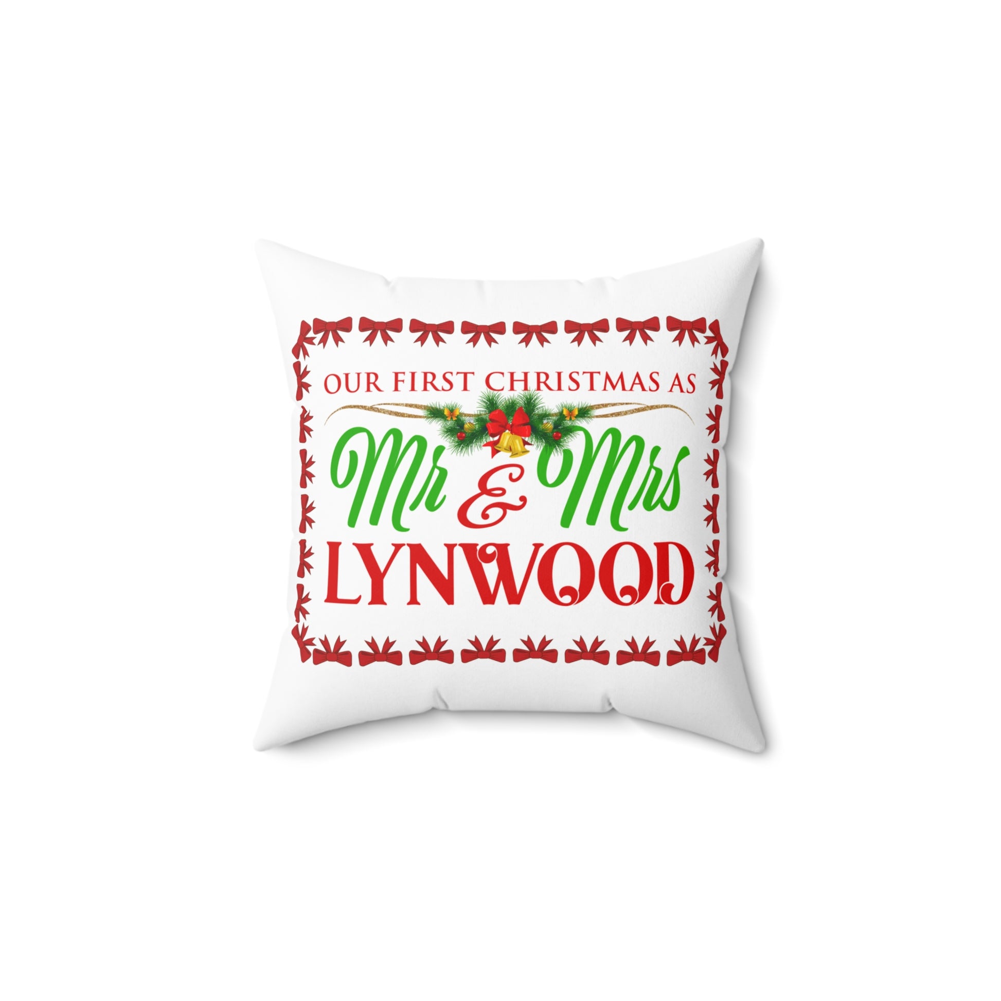 First Christmas Newlywed Spun Polyester Pillow - Holiday Decor, Wedding Gift, Newlywed Gift, Christmas Decor, Throw Pillow