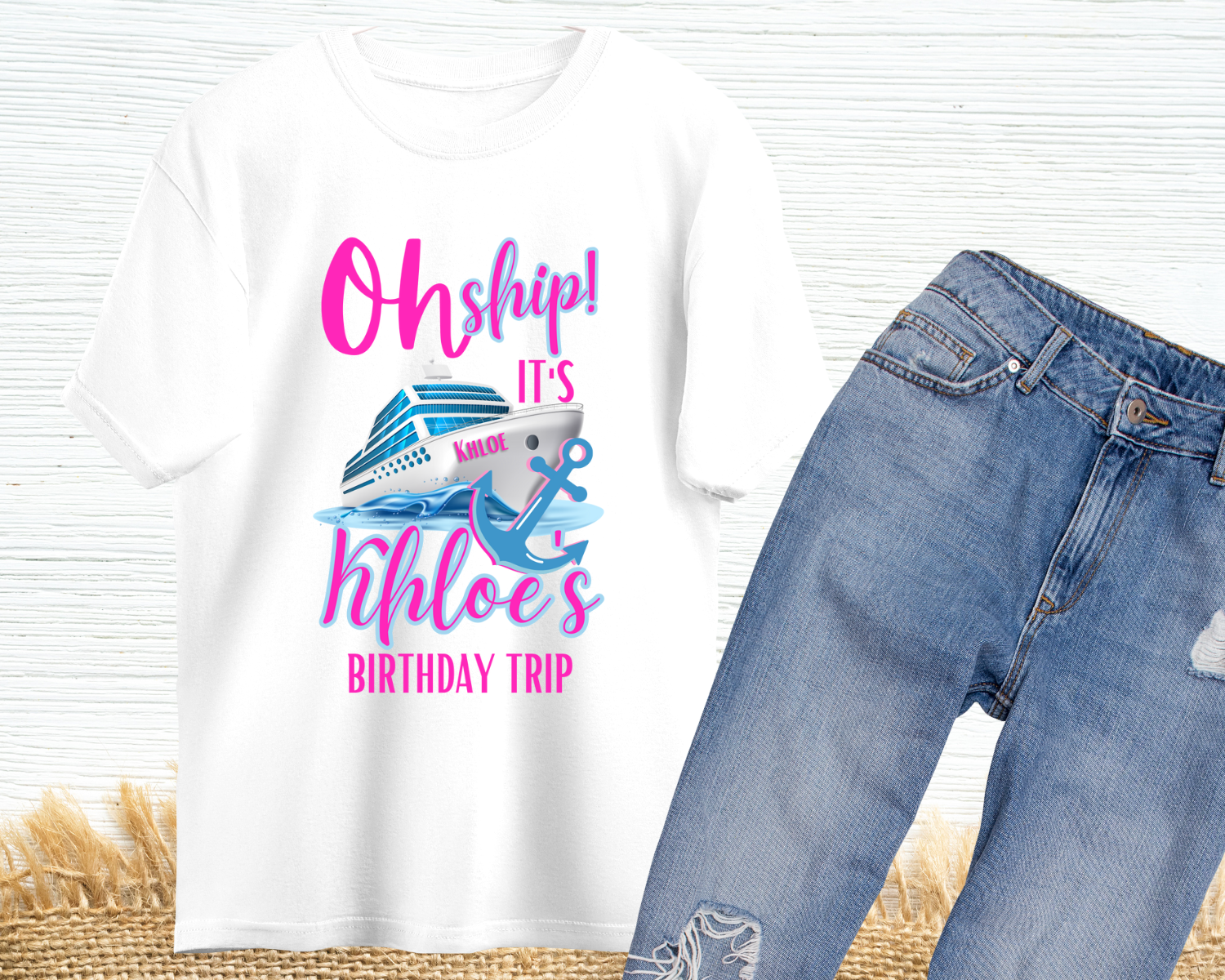 Oh Ship, It's a Birthday Trip T-Shirt. Customize with Name and font Colors.