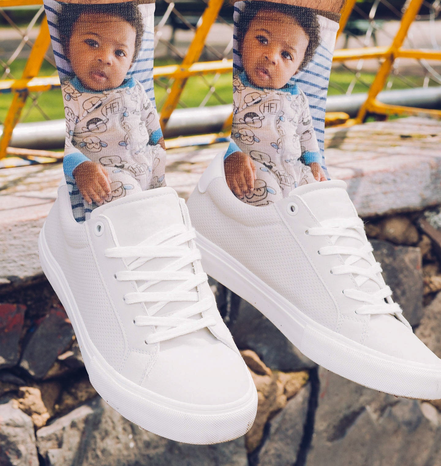 Customizable socks with photo for men or women. Upload your favorite image. Washable with bleach, the image doesn't fade, crack or peel.